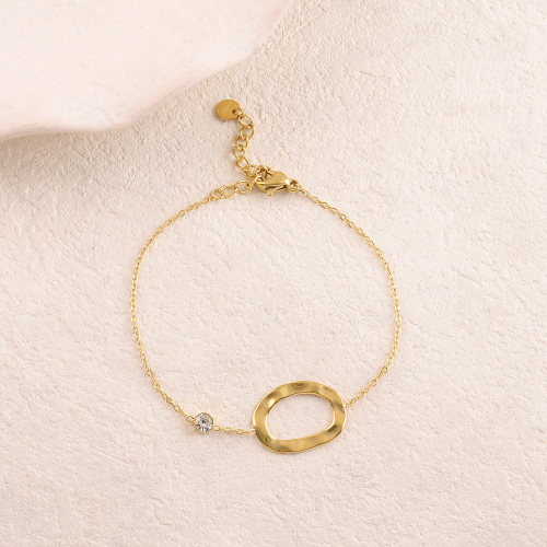 Bracelet sur chaine composé d’un strass et d’un anneau martelés.